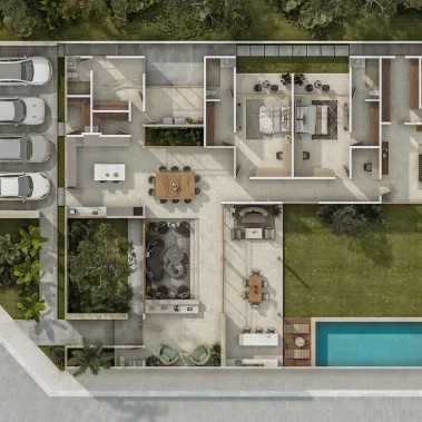 Nuestro trabajo fue convertir los modelos del despacho en imágenes, recorridos y videos listos para presentaciones y ventas. El objetivo fue lograr que la arquitectura se sintiera real, pero también deseable, manteniendo siempre la esencia del diseño original.