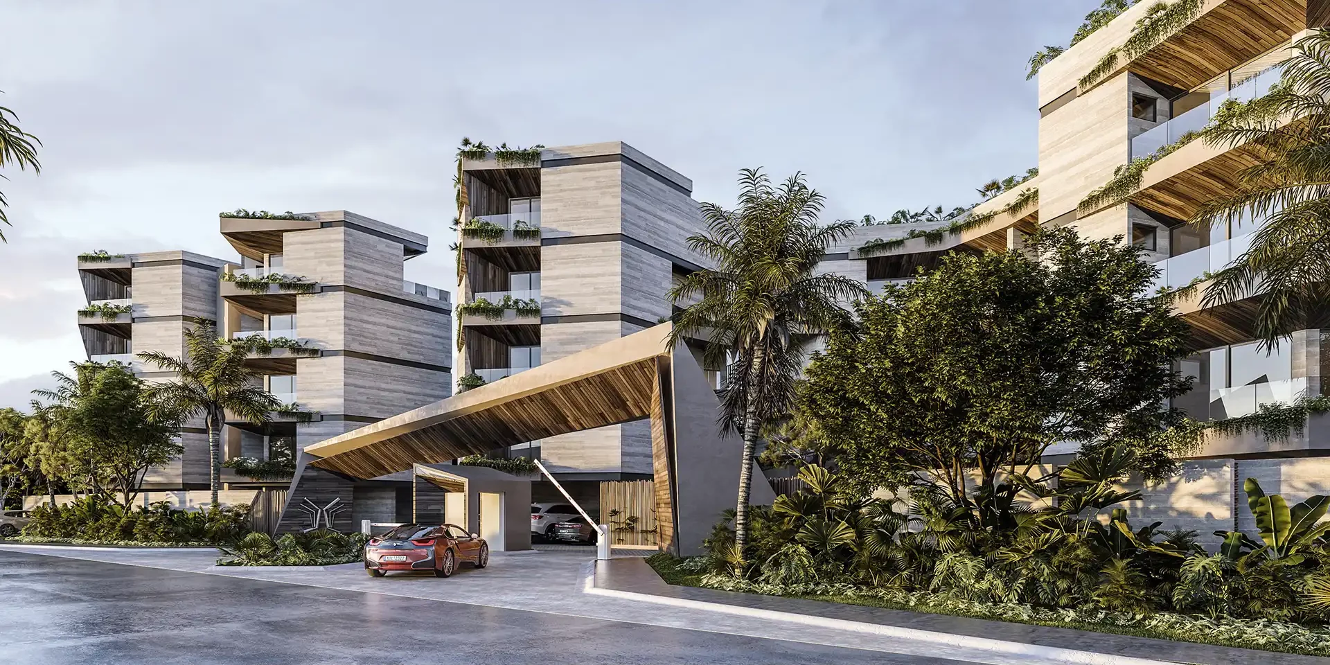 Muestren transiciones naturales (de fachada a lobby, de estancia a terraza).
