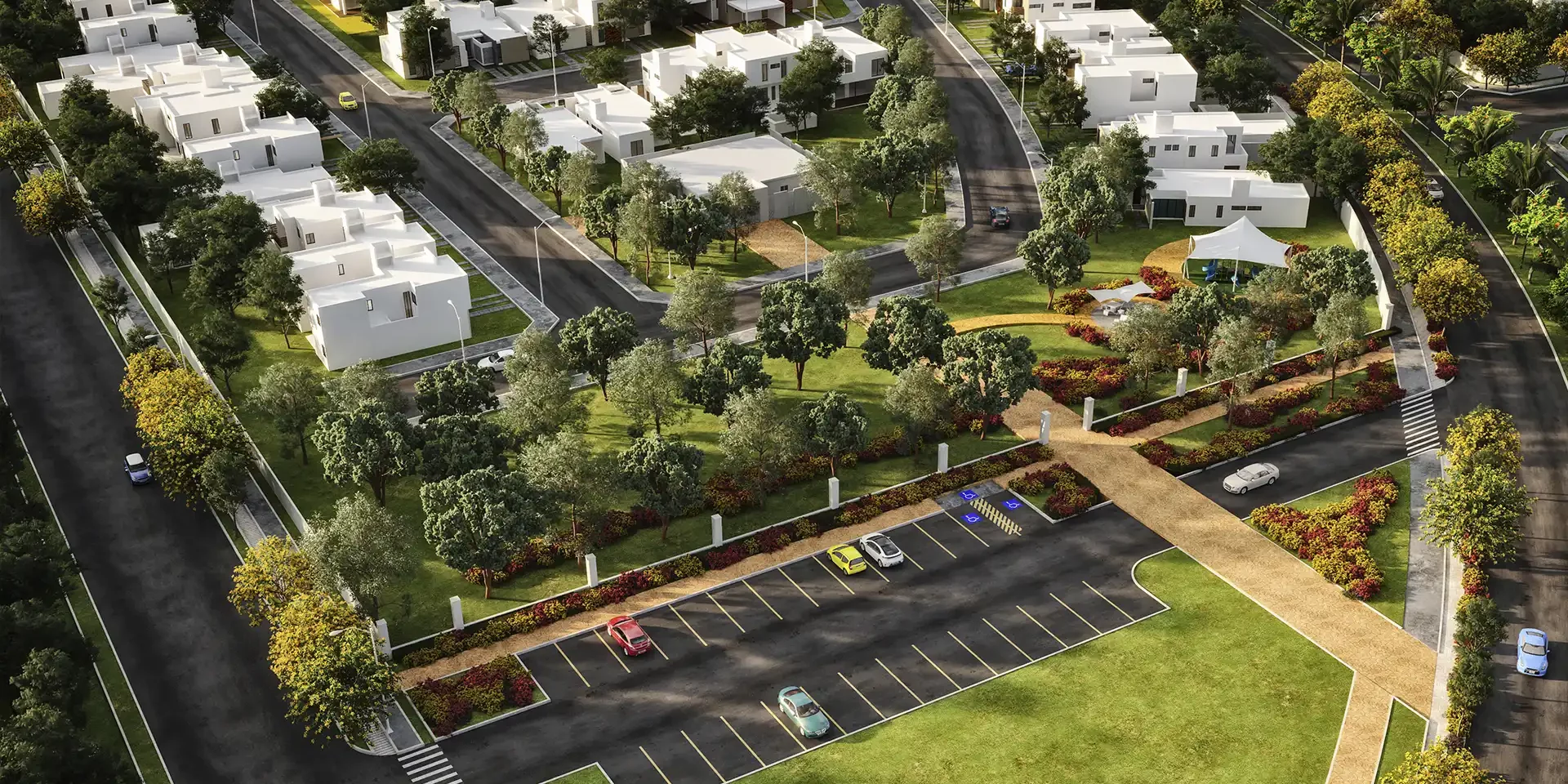 No intentes incluir la fachada, el estacionamiento, el jardín y las amenidades en un solo render. Cada imagen debe contar una sola historia. Si necesitas mostrar más, genera otra vista.